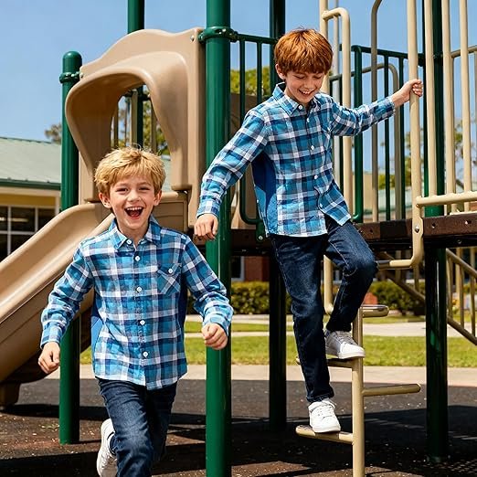 - Everyday Wear Comfort: Crafted for durability, this boy button down shirt offers a weight of 0.18-0.28kg and is ideal for daily activities. Its flannel material provides warmth and comfort for school days and birthday celebrations, making it an essential for every young boy’s wardrobe